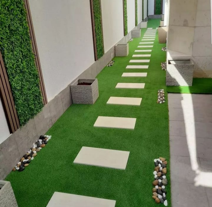 الحل الأمثل لتجميل الحوش دون صيانة، عشب صناعي بجودة عالية ومقاوم للعوامل الجوية.